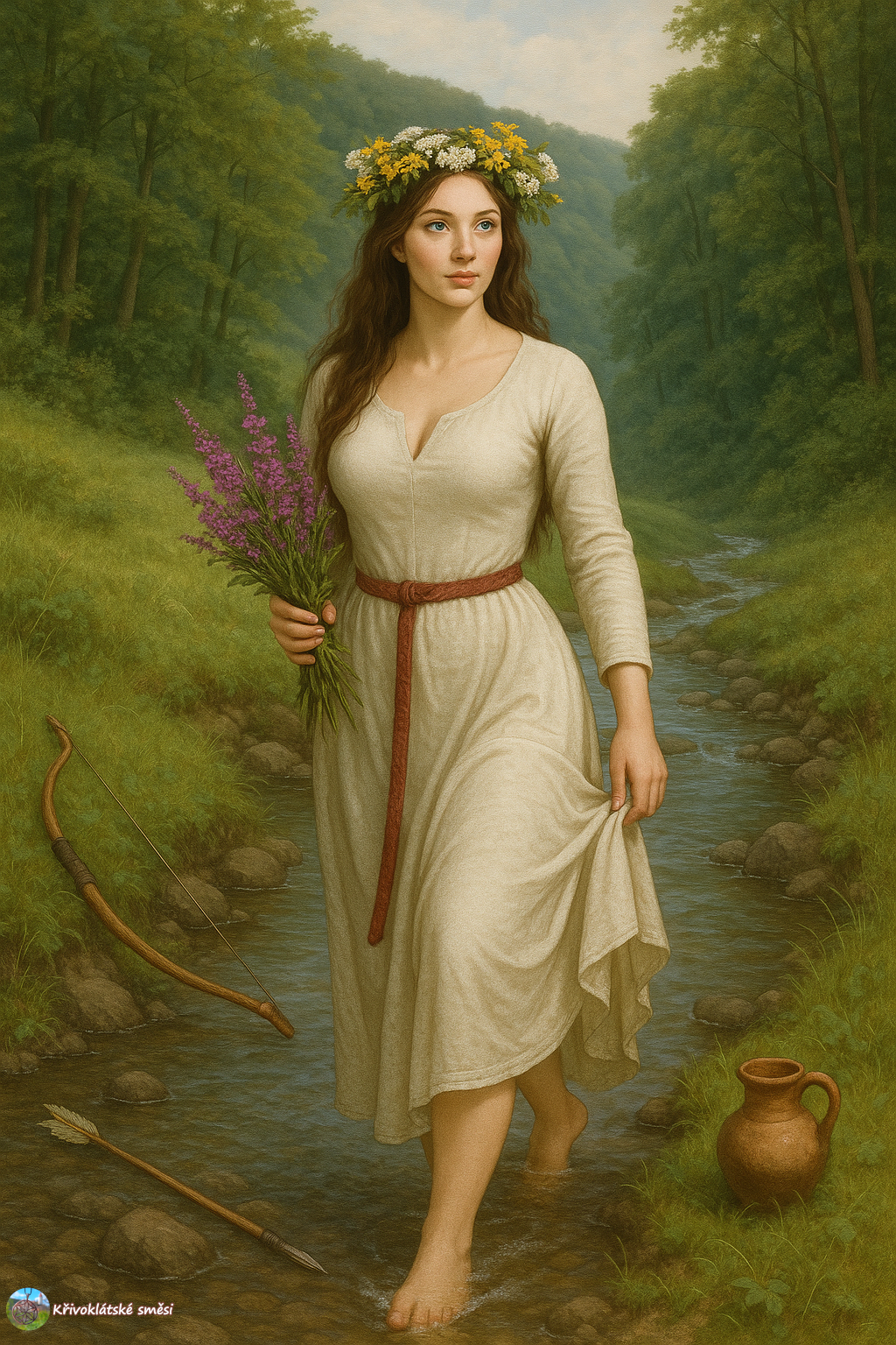 Teď nesla na zádech luk zcela jiný, než jaký si pamatovala z dětství. Byl to dar od Litorada, přítele, který zůstal po jejím boku i v těch nejtěžších dnech. Dlouhý jasanový luk, štíhlý a pevný jako stvol divizny, lehce zahnutý jako kmen buku rostoucího na suti ve svahu. Dřevo mělo ve svém jádru zlatý lesk, jako by se v něm skrývala paměť slunečních paprsků, které onen statný jasan přijímal každým listem. Když luk držela, měla pocit, že se napojuje na něco mnohem staršího než války a nepokoje, na proud mízy a léčivé síly lesa. Nebyl to jen nástroj k zabíjení. Byl to nástroj k udržení rovnováhy.
