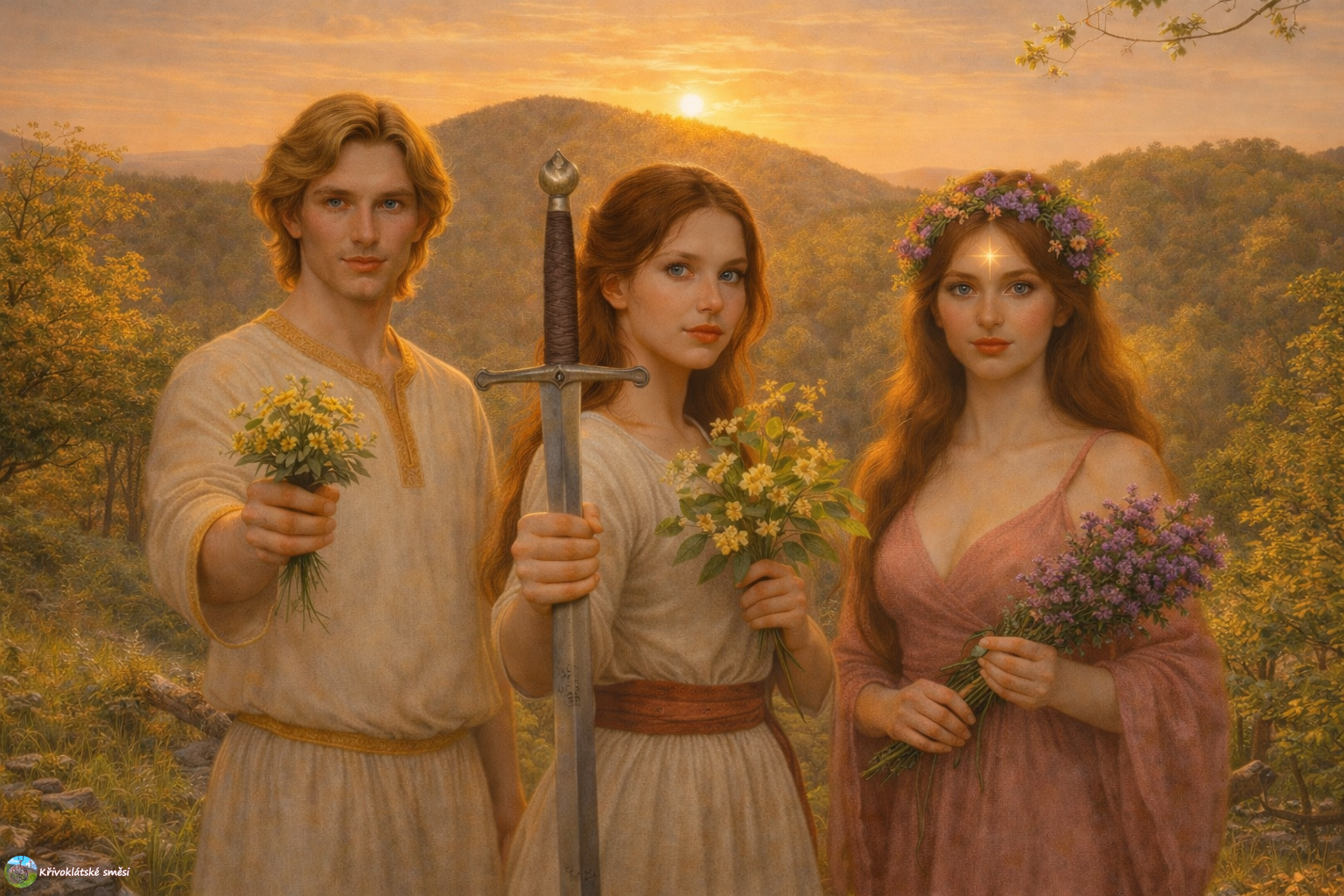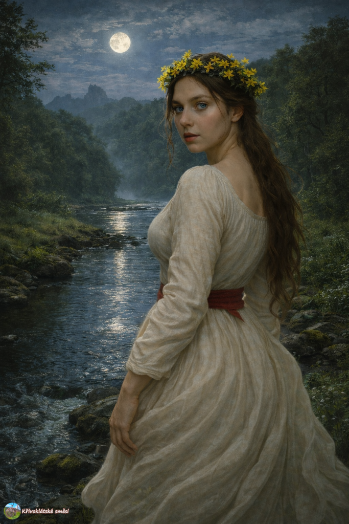 Nastala temná noc. Nad řekou líně plyne mlha, která halí divoké proudy v naději, že alespoň o půlnoci utichnou a dají tak vyniknout švitoření nočních zvířat. Mezi statnými jasany prochází dva lidé, kteří míří stezkou proti proudu potoka směrem od vesničky Skryje. Potok divočí mezi zalesněnými skalami v rozlehlé nivě, kam lidé občas vypouští dobytek na pastvu. Dívka se zlatým ohněm v očích je udivena rozlohou údolí a okolními kopci, které stojí v řadě jako horští strážci.