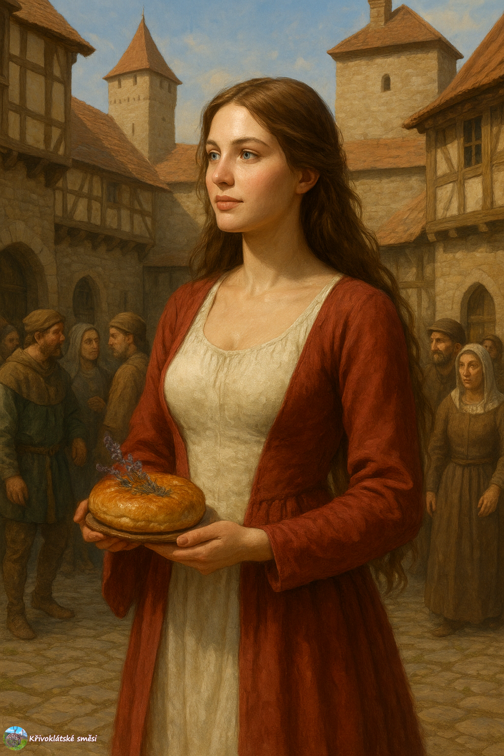 Hana sledovala, jak se mnich postupně zotavuje. Za pár dnů se bude moct znovu vydat na cestu. V hmoždíři ještě podrtila několik kořínků, které tu nechá lékaři Vilémovi pro další nemocné. Oprášila si své bílé lněné šaty, narovnala červený tkaný pásek, který zdobil její hnědé vlasy jako nějaký květinový věneček. Protáhla se.